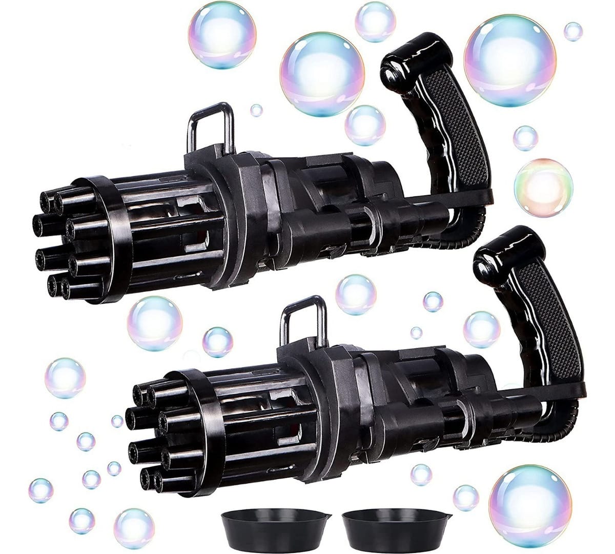 • Incluye: Pistola de burbujas Gatling, plato para líquido jabonoso