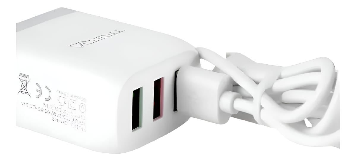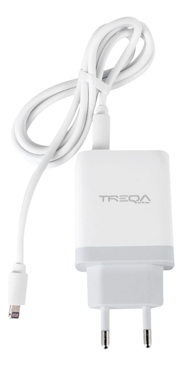 • 1 Cargador de pared Treqa con 3 puertos USB.