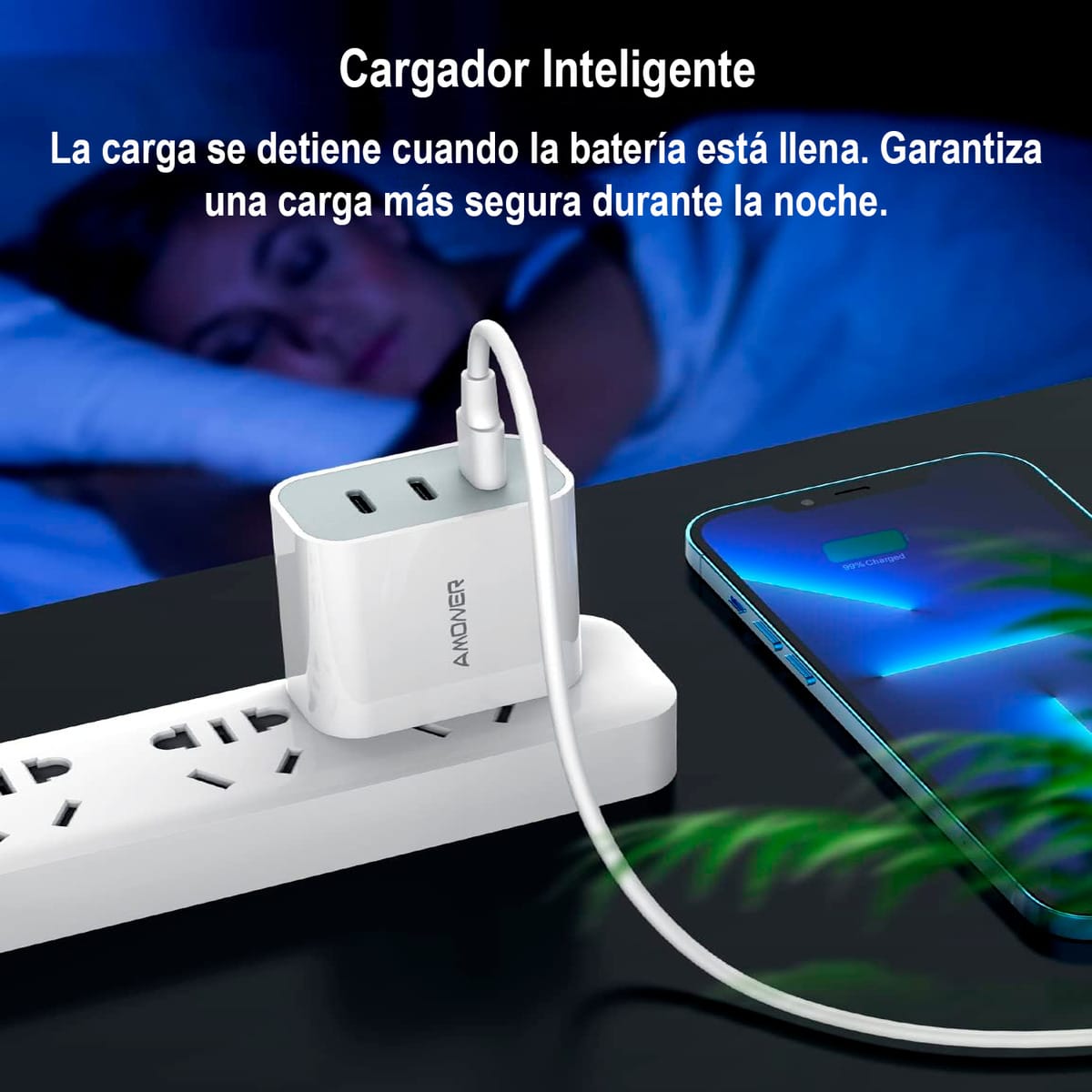 El chip inteligente integrado identifica automáticamente el dispositivo conectado y ajusta la corriente de salida para ofrecer una carga rápida y eficiente, prolongando la vida útil de la batería.