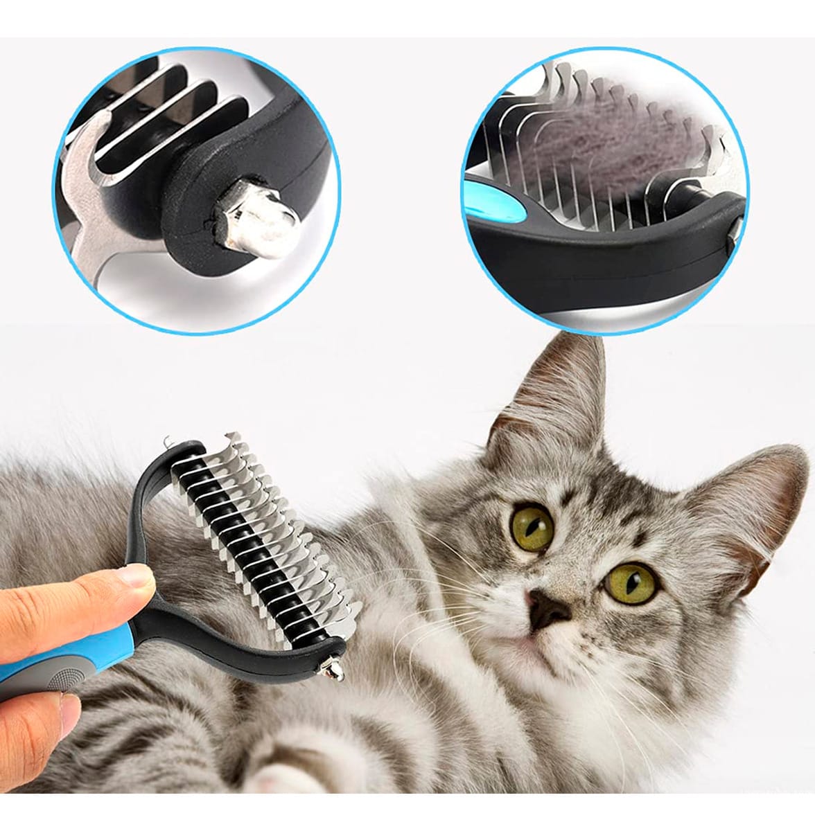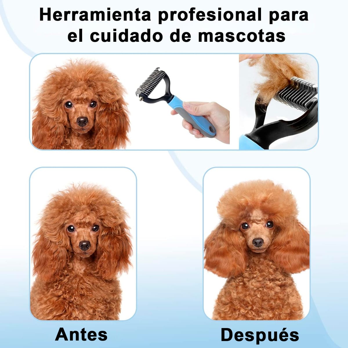 Cepillo Quita Nudos para Perros y Gatos – Doble Cara, Acero Inoxidable y Mango Antideslizante