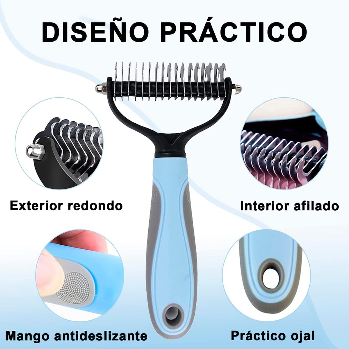Elimine nudos, pelo suelto y subpelo muerto en minutos con este cepillo profesional para mascotas, diseñado para gatos y perros de pelaje medio a largo. Su doble cabezal permite un cepillado eficiente, suave y seguro, ideal para mantener el manto limpio, sano y sin tirones.