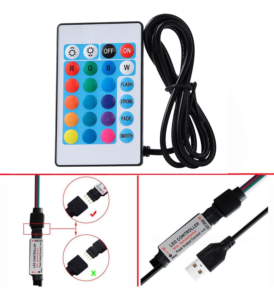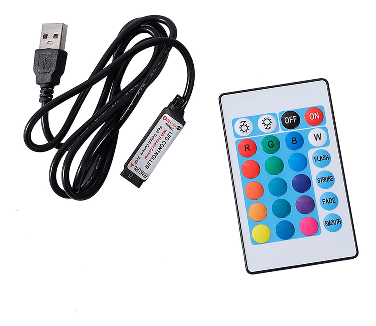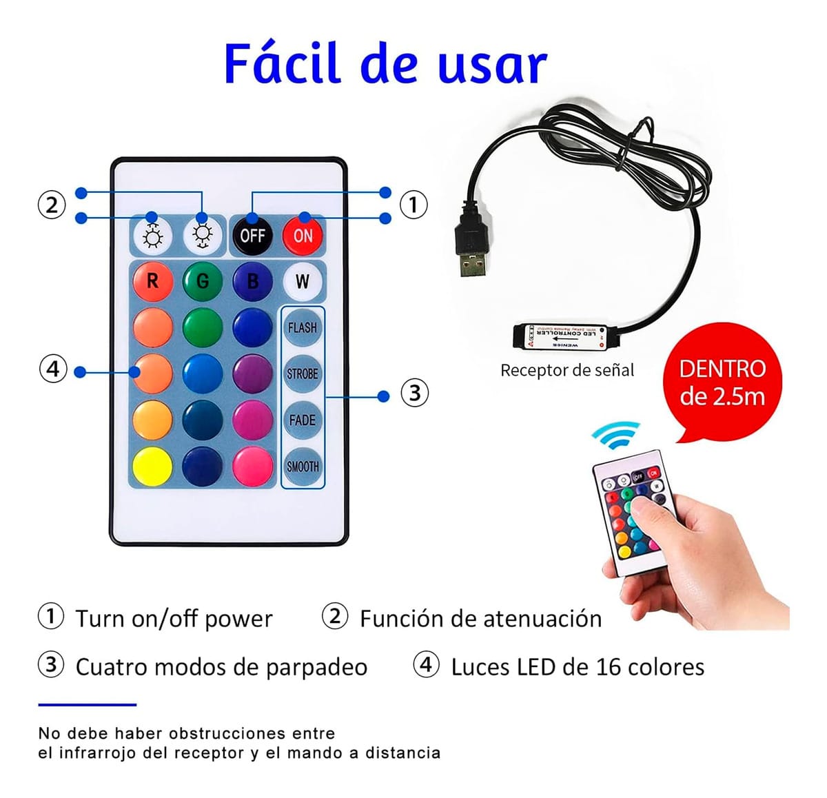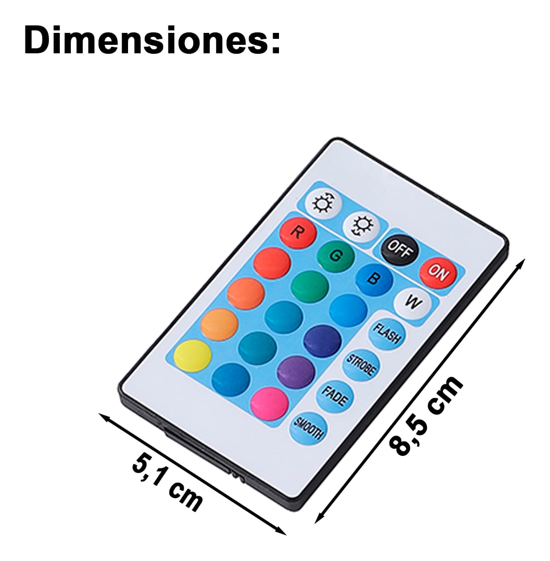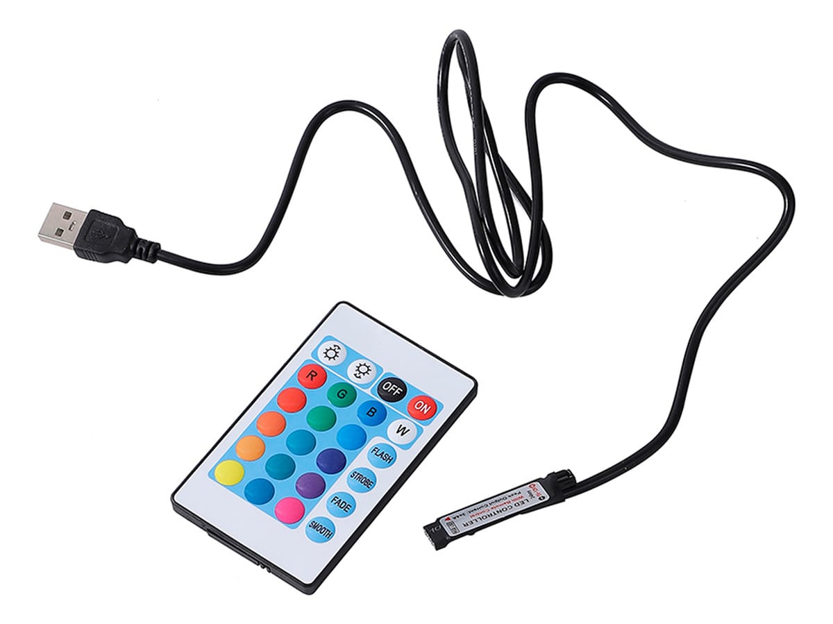 Incluye 1 mando a distancia IR/RF con tira LED USB RGB de 24 teclas.