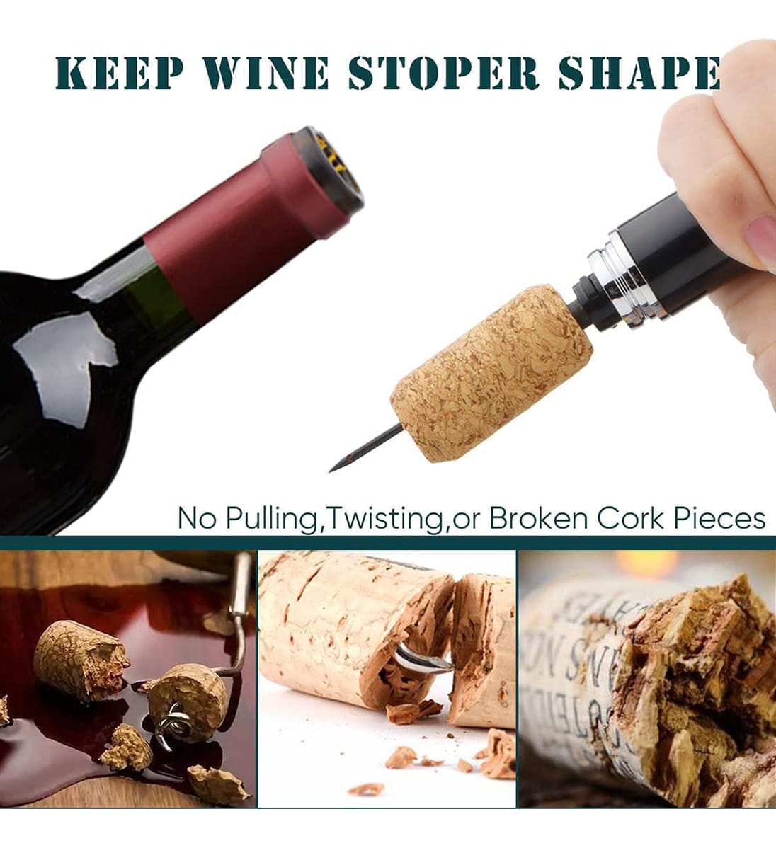 🍾 Fácil y divertido: Solo un micro agujero y el corcho sale perfectamente.