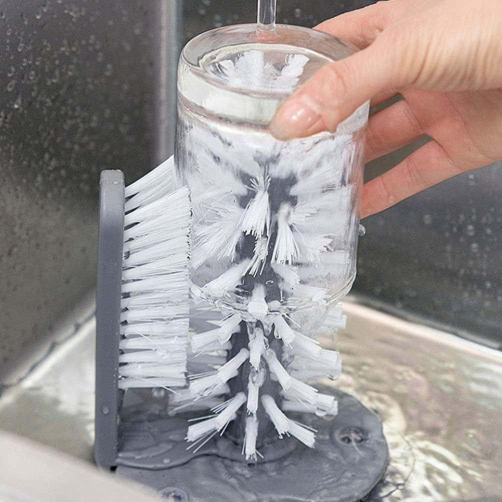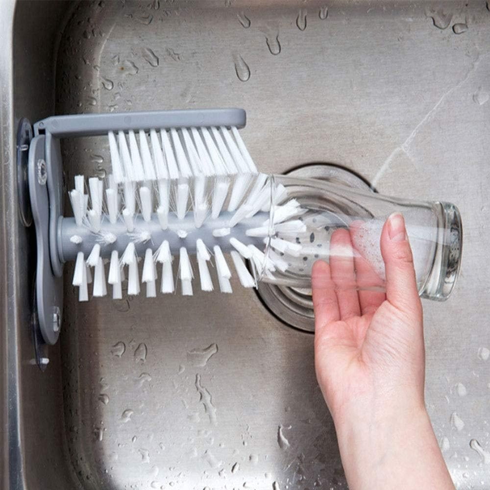 Lava Vasos De Cepillo Doble De Uso Manual Con Ventosas