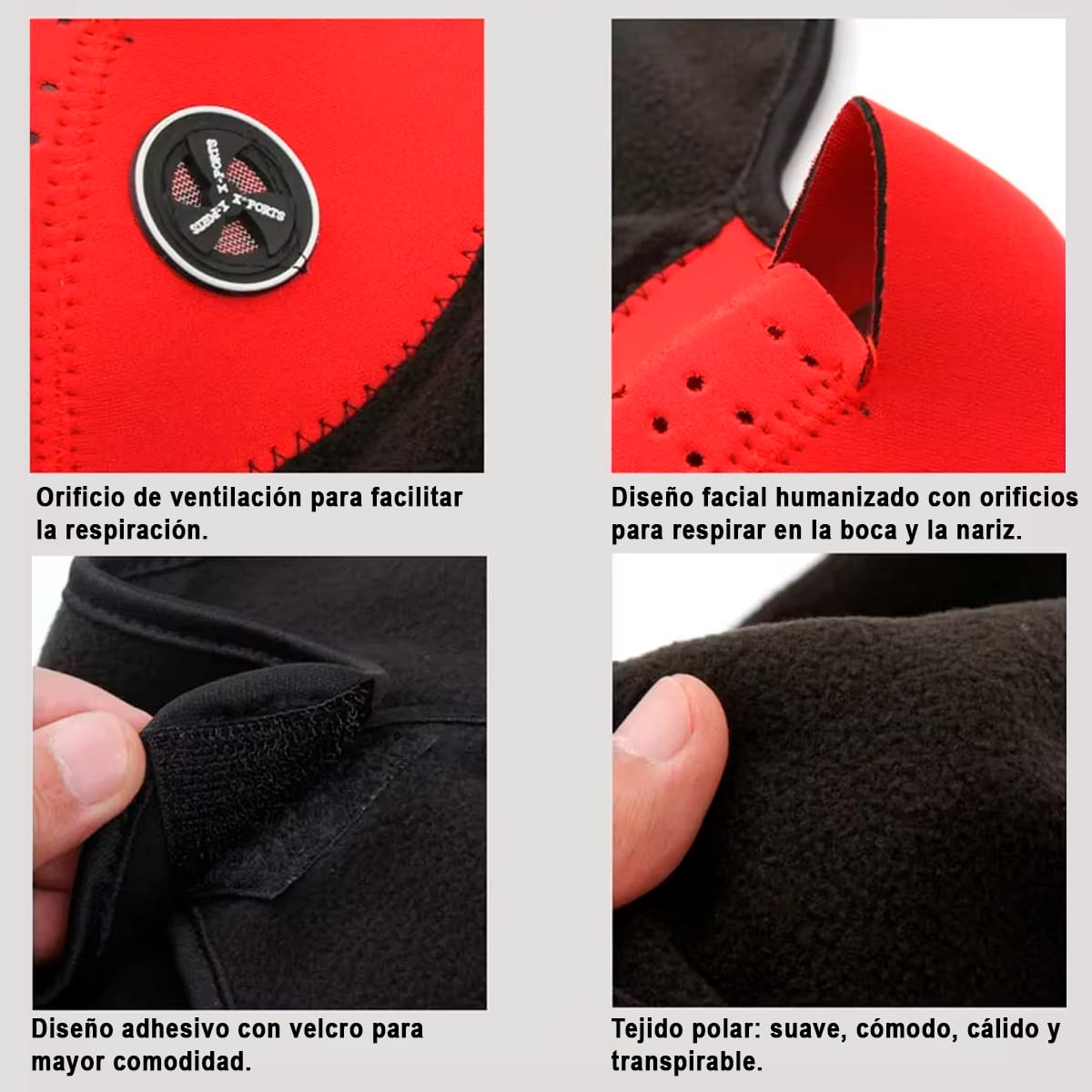 • Orificio ventilado en la zona de la boca