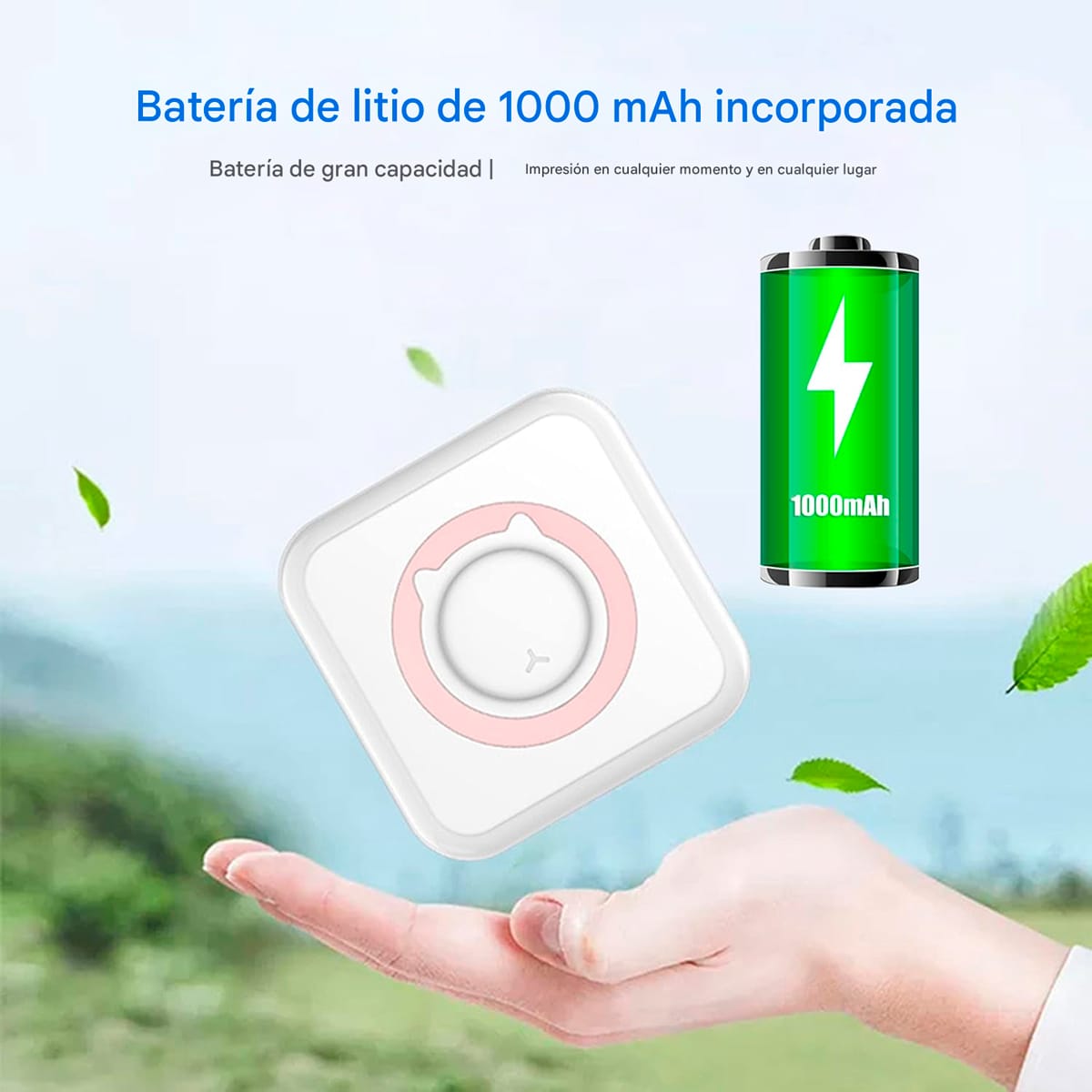 Incluye una batería de litio 1000 mAh, recargable por USB (cable incluido). Ofrece autonomía suficiente para varias horas de uso continuo.