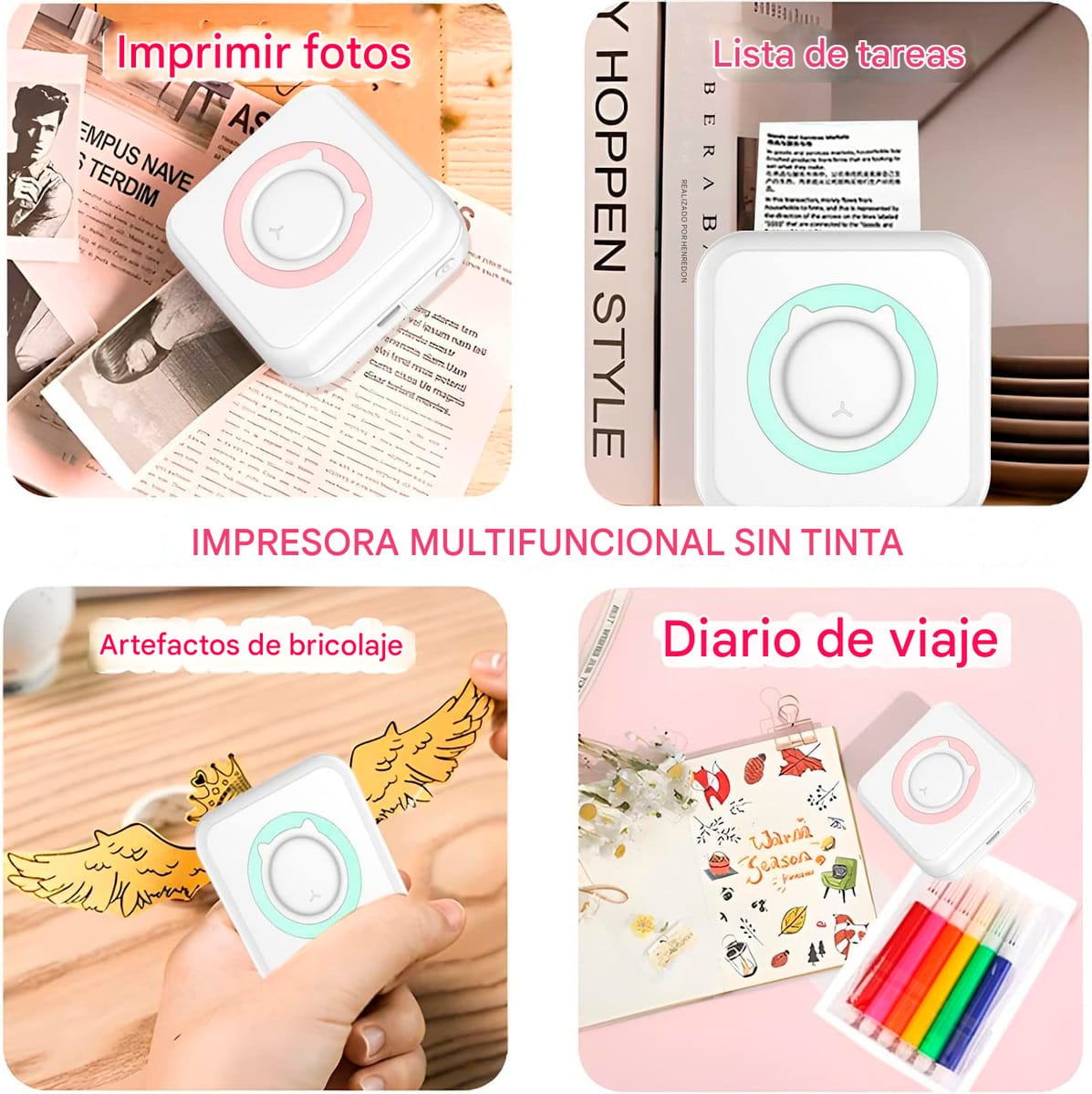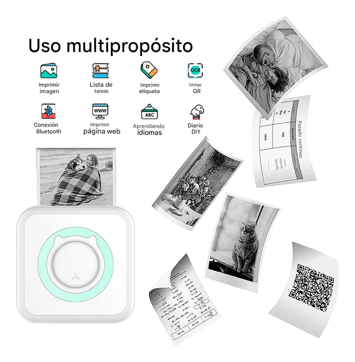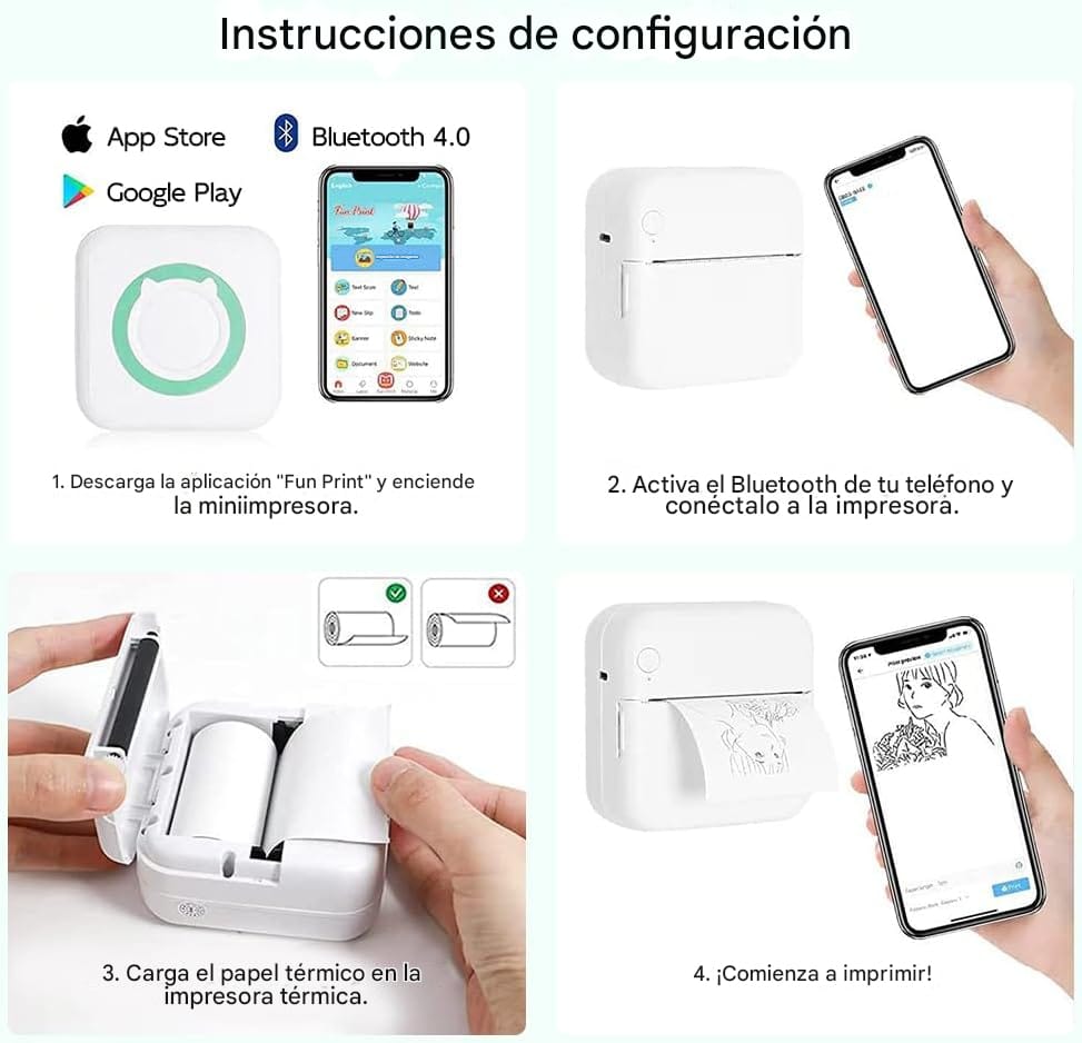 Lleve la impresión a donde vaya. Esta mini impresora térmica portátil es ligera, práctica y funciona sin tinta, ideal para fotos, etiquetas, apuntes, listas y todo lo que necesite imprimir desde su smartphone.