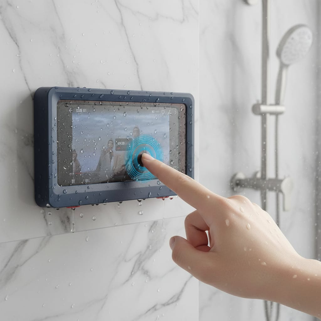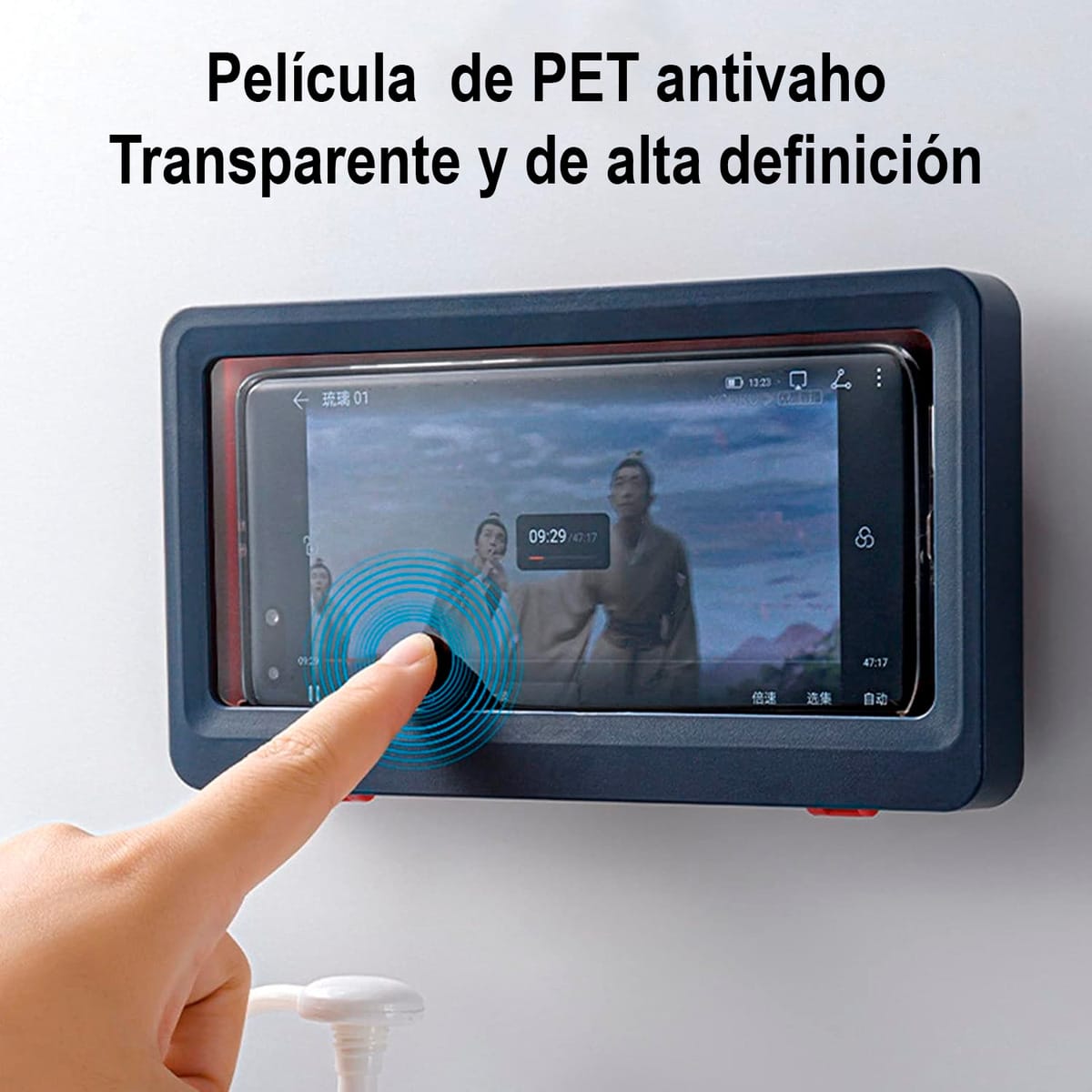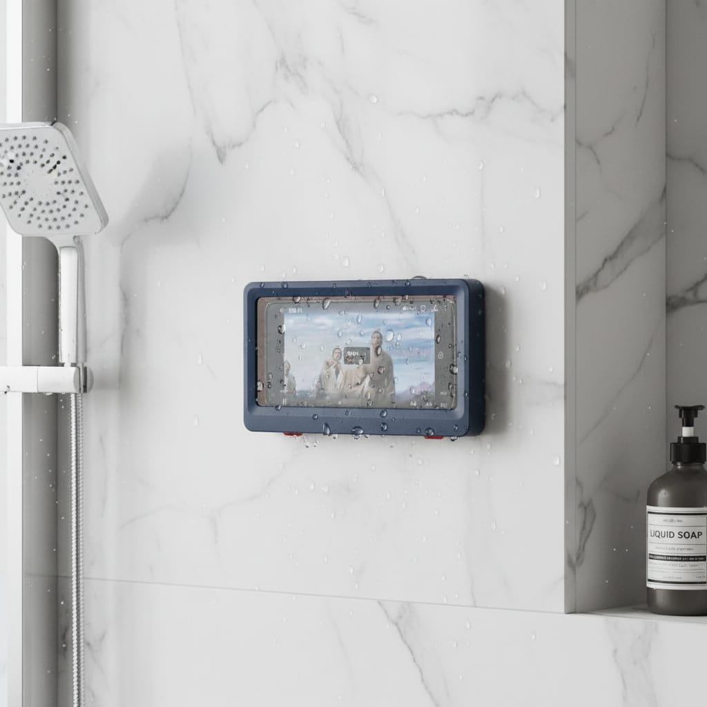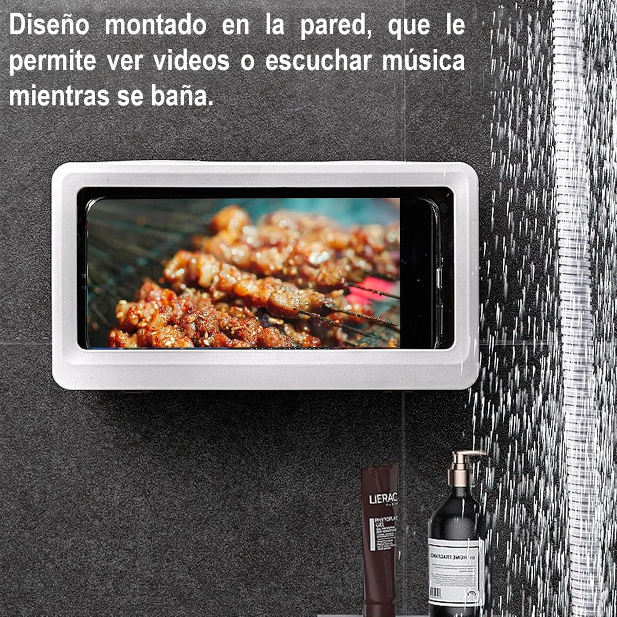 El soporte es totalmente impermeable y antivaho, protegiendo el teléfono del agua y la humedad. Permite usar el celular en la ducha o en la cocina sin preocuparse por salpicaduras o condensación en la pantalla.
