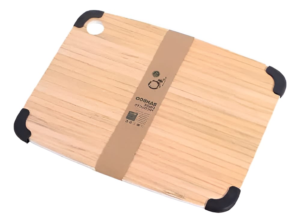 Tabla para picar elaborada en madera con bordes de silicona en tono negro, superficie ligera, diseñada para el uso diario y manejo sin esfuerzo, sin dañar el filo de los cuchillos. resiste temperaturas de hasta 176°C.