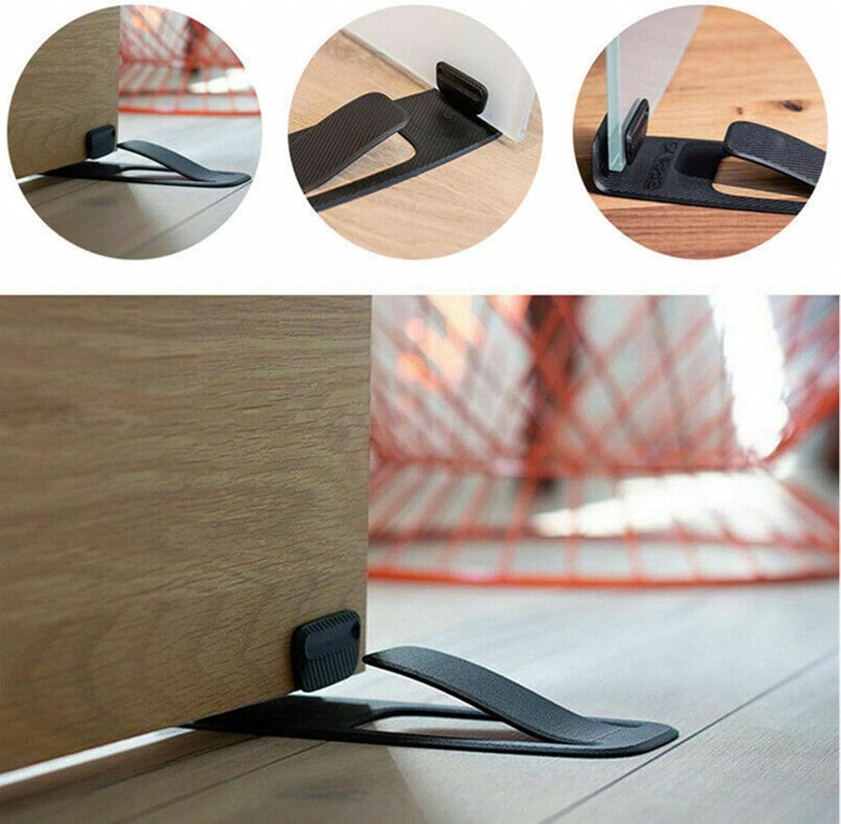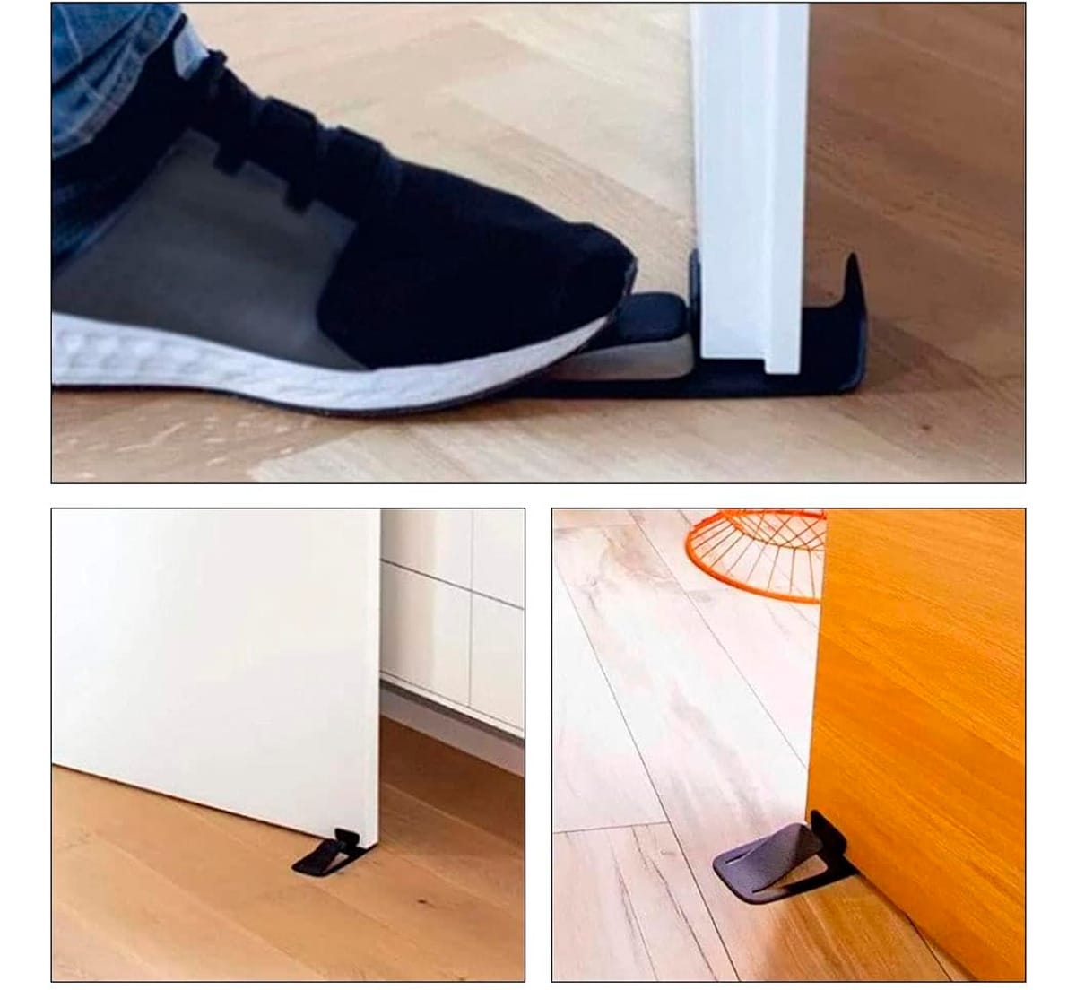 Gracias a su base antideslizante y resistente, este bloqueador de puerta mantiene la puerta en su lugar de forma segura, evitando que se cierre accidentalmente o golpee la pared. Es ideal para dormitorios, salas de estar, baños, cocinas y cualquier ambiente del hogar u oficina.