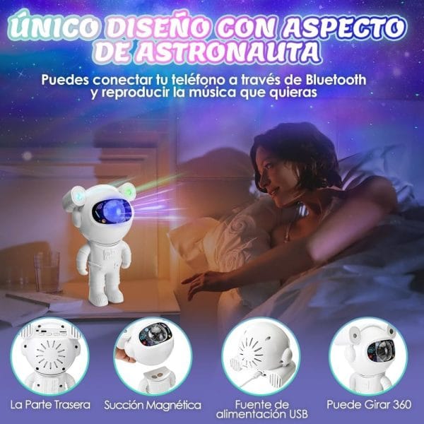 🚀 Proyector Astronauta Galaxia – Luz Nocturna Infantil con Estrellas, Nebulosas y Música 🎶