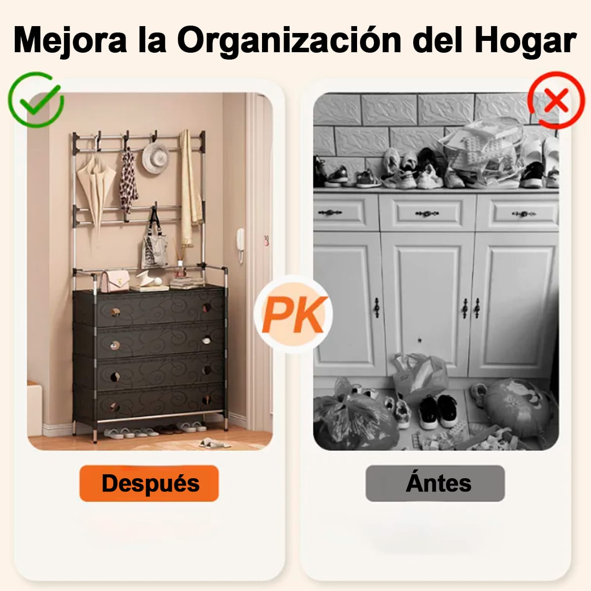 Transforma tu hogar y mantén tu ropa, calzado y accesorios siempre organizados con este zapatero y perchero multifuncional 3 en 1. ¡Compra ahora y disfruta de orden, estilo y practicidad en un solo mueble!