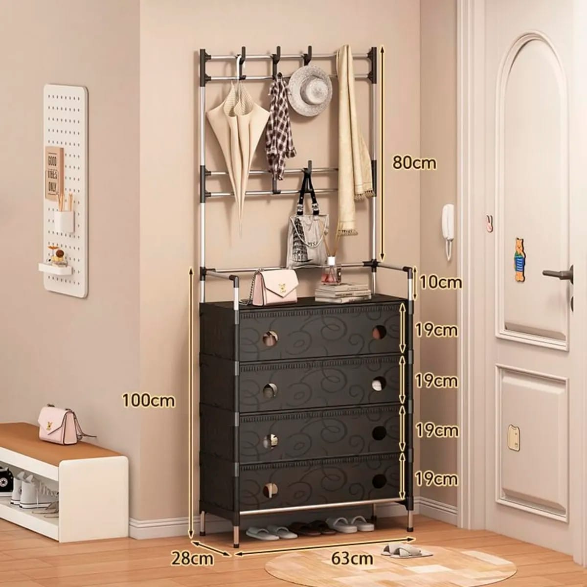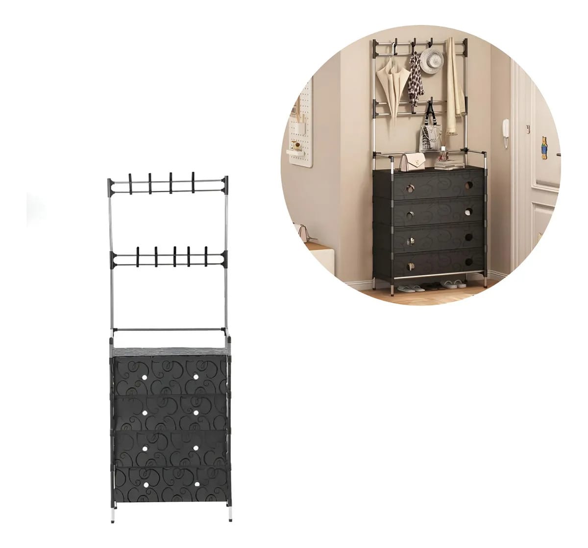 🖤 Zapatero y Perchero Organizador Multifuncional 3 en 1 con Cajones